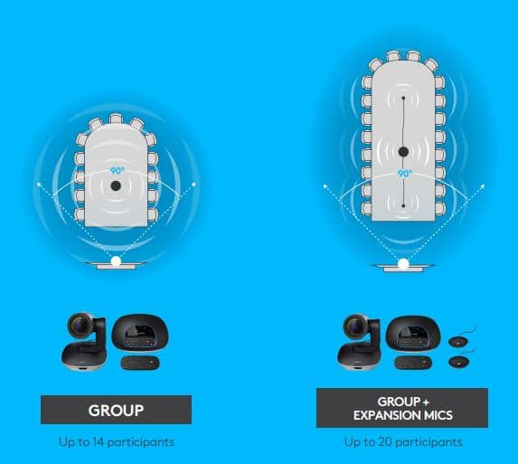 Jika ruang meeting kantor anda cukup luas dan membutuhkan kordinasi meeting secara online, Logitech group dapat di gunakan sebagai piranti meeting online.