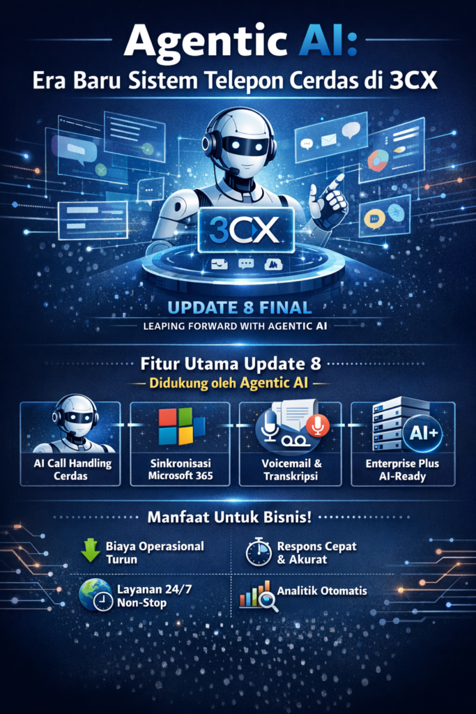 Teknologi AI terus melaju cepat — dan 3CX baru saja mengambil langkah besar dengan meluncurkan Update 8 Final untuk versi 20, memperkenalkan Agentic AI sebagai pusat dari inovasi di sistem telepon bisnis mereka. Update ini bukan hanya soal otomatisasi biasa, tetapi membawa kecerdasan buatan ke level di mana sistem telepon dapat “bertindak” lebih pintar, terkoordinasi, dan adaptif terhadap kebutuhan perusahaan modern.
