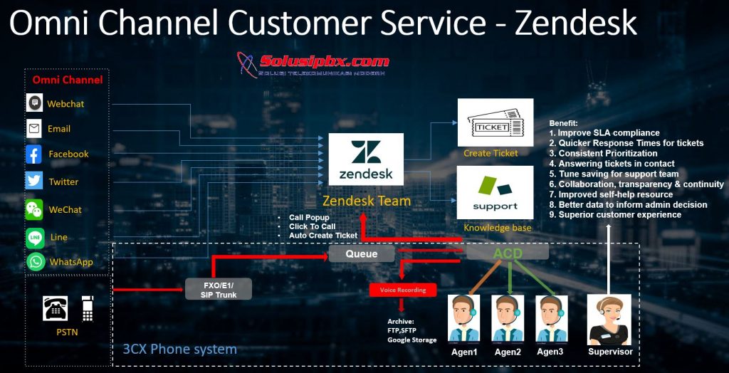 OmniChannel berbasis Zendesk yang di integrasikan dengan system 3CX memberikan experience lebih baik. Berikut keuntungan yang di dapatkan dengan adanya system tiketing: