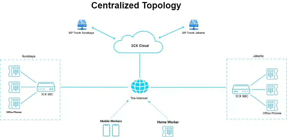 CloudPBX dapat diakses dari mana saja dengan koneksi internet. Pengguna dapat menggunakan telepon fisik, aplikasi softphone di komputer, atau aplikasi seluler untuk mengakses sistem.