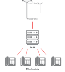 PABX hanya dapat diakses secara lokal di tempat kerja atau melalui jalur telepon kabel tradisional.