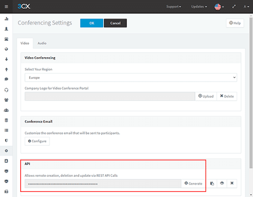 untuk dapat mengaktifkan API, masuk pada Konsol management, setting, conference> API  Buat API Baru untuk mengaktifkannya.